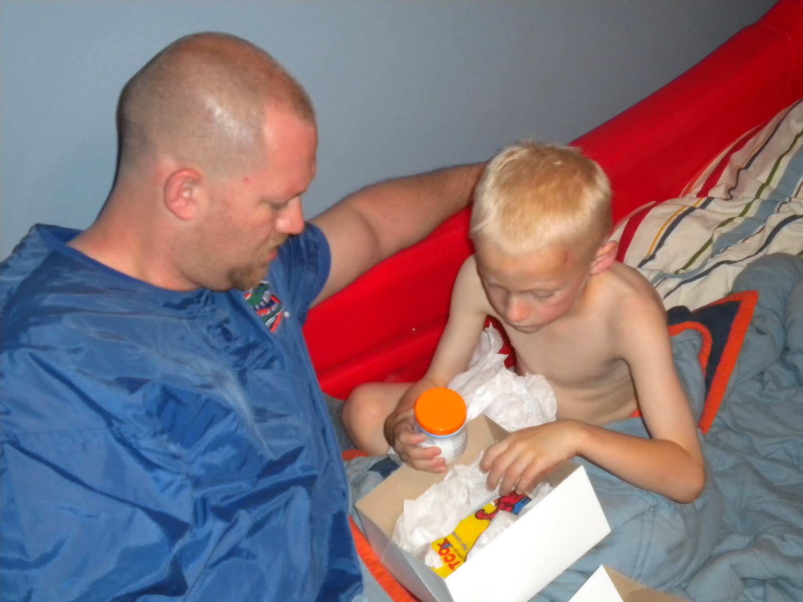 The last game of the season came around!! I wish I could say I was at the game, but it was raining and in the lower 60's and Katelyn was sick, so Mark took him to the game and i stayed home. One of Camden's major sensory issues is his head getting wet... Soccer Game---- Outside---Raining!!!! I kinda felt sorry for Mark trying to get Camden there, but his team was depending on him!! He had a really hard time at first, but as soon as he saw the trophies in the coaches bag, he played like a rock star. He ended up scoring 7 goals that game!!!! I am so proud of my little soccer player!!!!